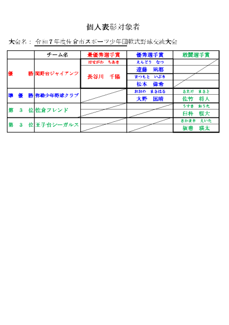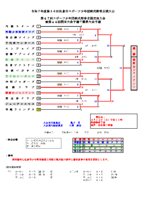 令和7年度第36回佐倉市スポーツ少年団軟式野球交流大会