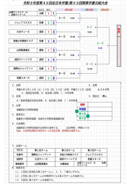 令和8年度 第46回全日本学童/第49回関東学童北総大会
