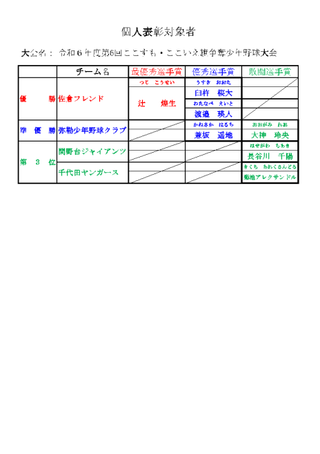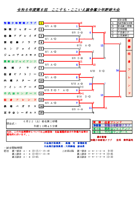 令和6年度 第6回 ここすも・ここいえ旗争奪少年野球大会