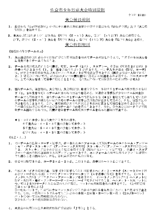 【佐倉市少年野球連盟友遊ボール大会規則】 →